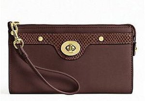 Usually ships in 24 hours Coach listened to their buyers and made a wristlet - clutch that can be organized inside with card slots and separate compartments and can easily carry your cell phone. Front pocket also has usable turn buckle closure.